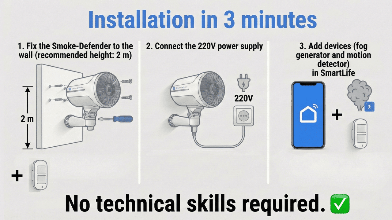 The Smoke-Defender is an anti-burglary fog generator designed to neutralize a thief in seconds.