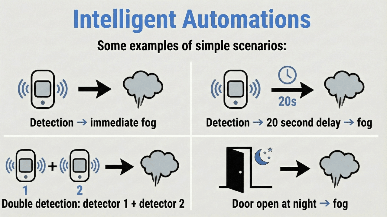– Option to add delays before smoke activation.